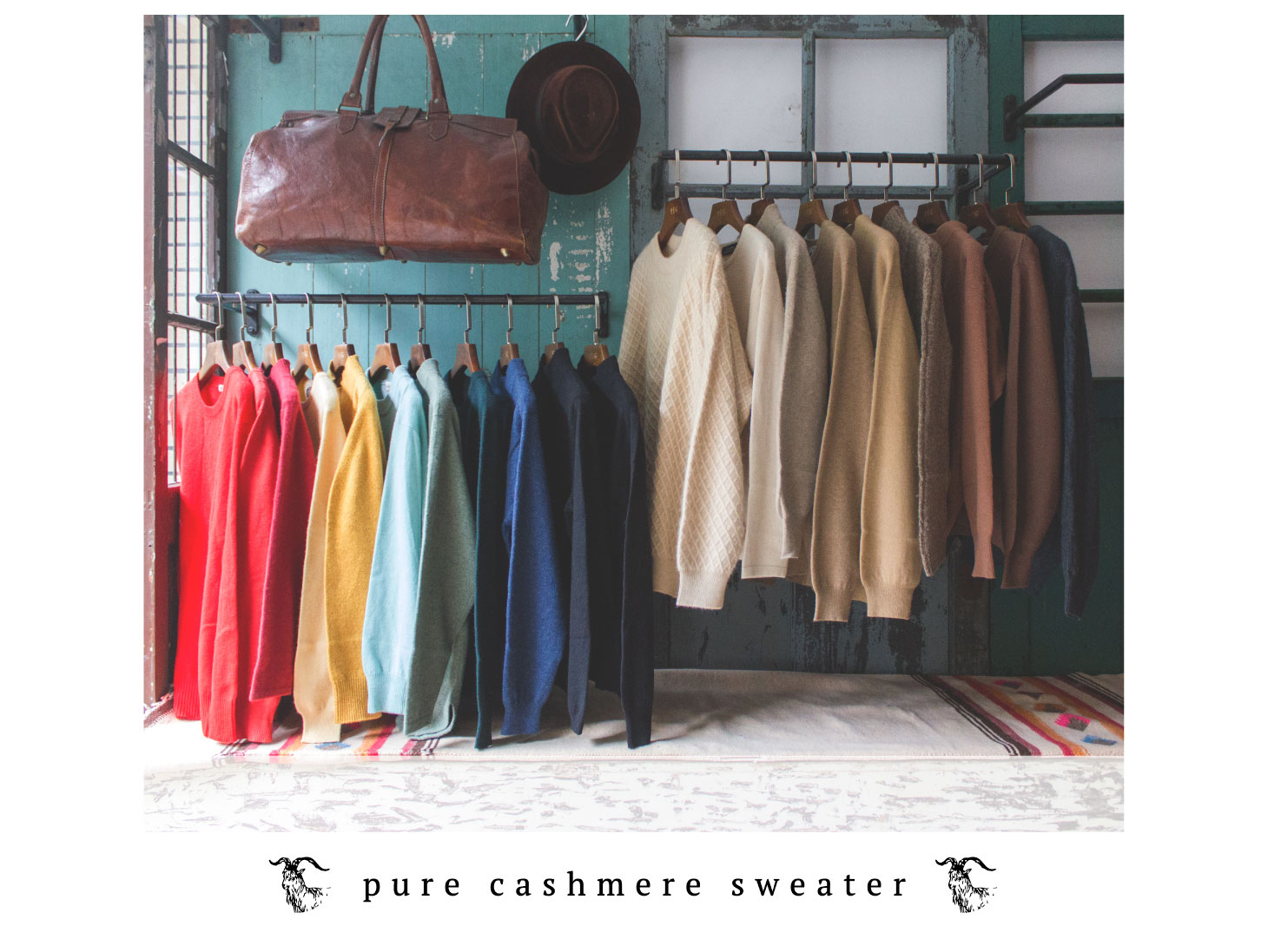 「Cashmere羊絨毛」主要取自於生長在海拔15000英尺的高山山羊,因為高山很冷,所以冬天的時候羊群們會在最靠近皮膚表層的地方長出一層細軟透氣的絨毛,用來抵禦風寒並且維持體溫!
