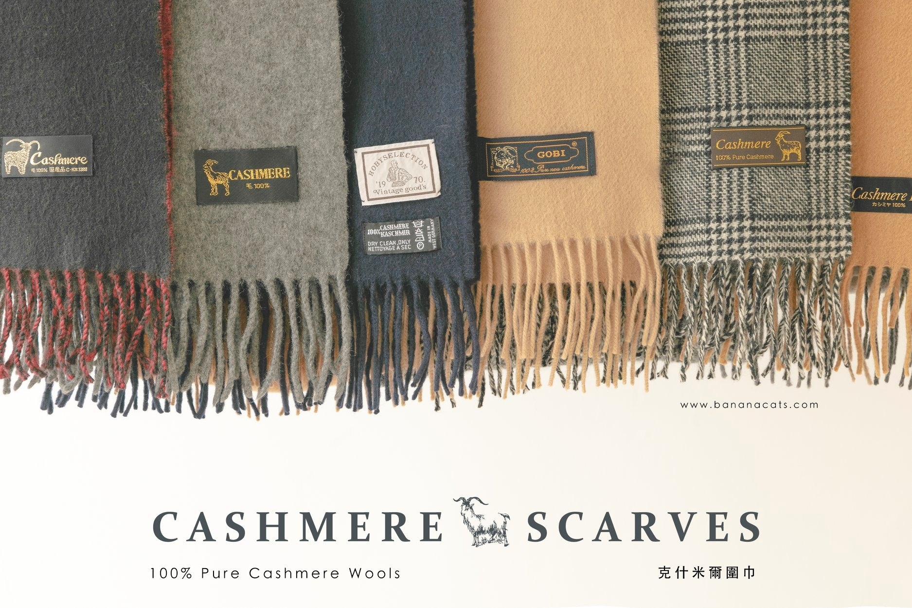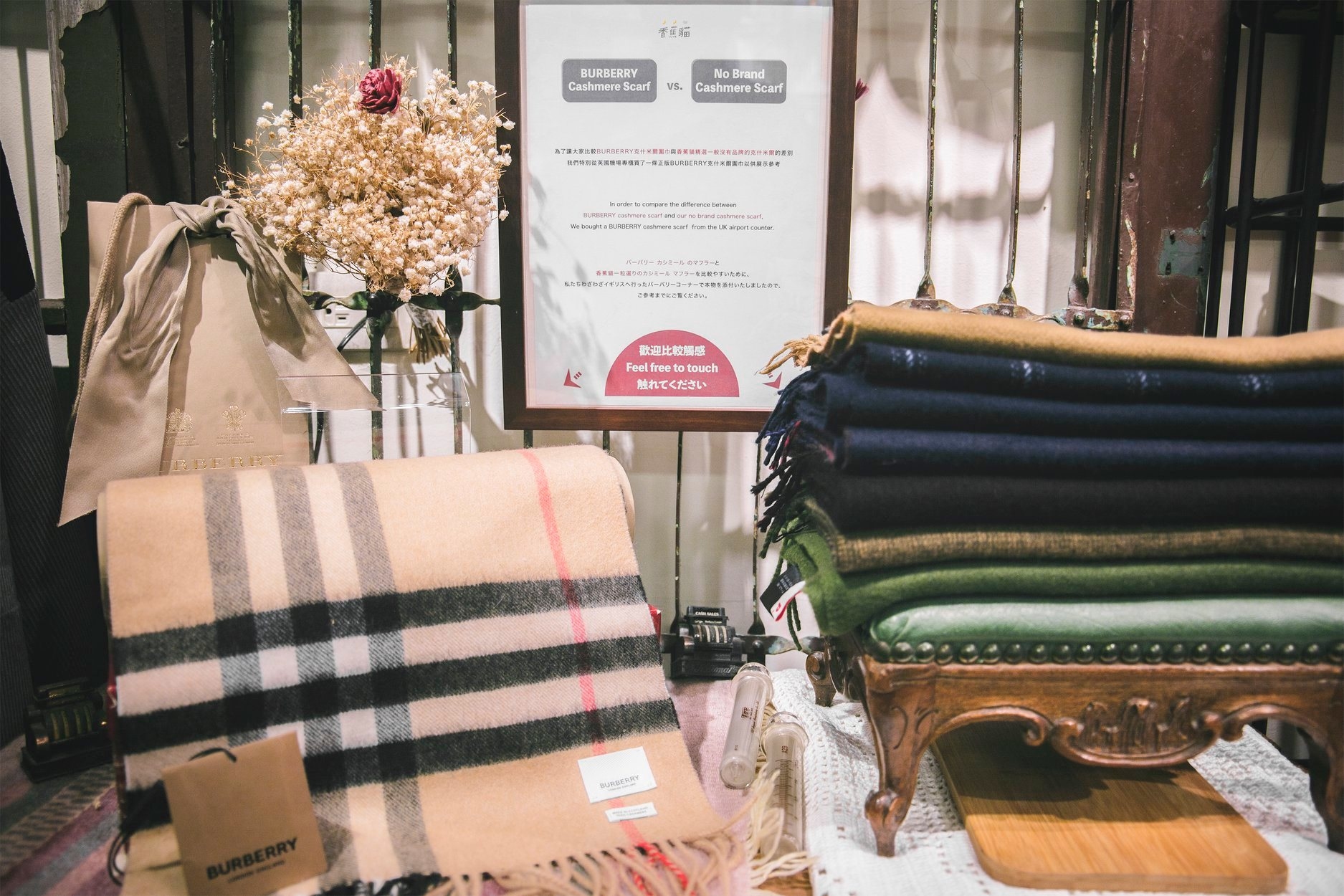 左邊是這次購入的 BURBERRY 羊絨圍巾,右邊是我們精選的 Cashmere 羊絨圍巾